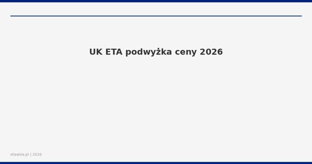 UK ETA cena 2026 znacznie się zmienia. Rząd Wielkiej Brytanii ogłosił, że od 8 kwietnia 2026 roku cena elektronicznego wizy turystycznej (UK ETA) wzrośnie z £16 do £20. Jest to idealna chwila dla polskich podróżników, aby złożyć wniosek teraz, zanim nowa cena wejdzie w życie. W tym przewodniku dowiesz się wszystkiego, co musisz wiedzieć o tej podwyżce, oraz jak szybko i bezpiecznie złożyć wniosek online.